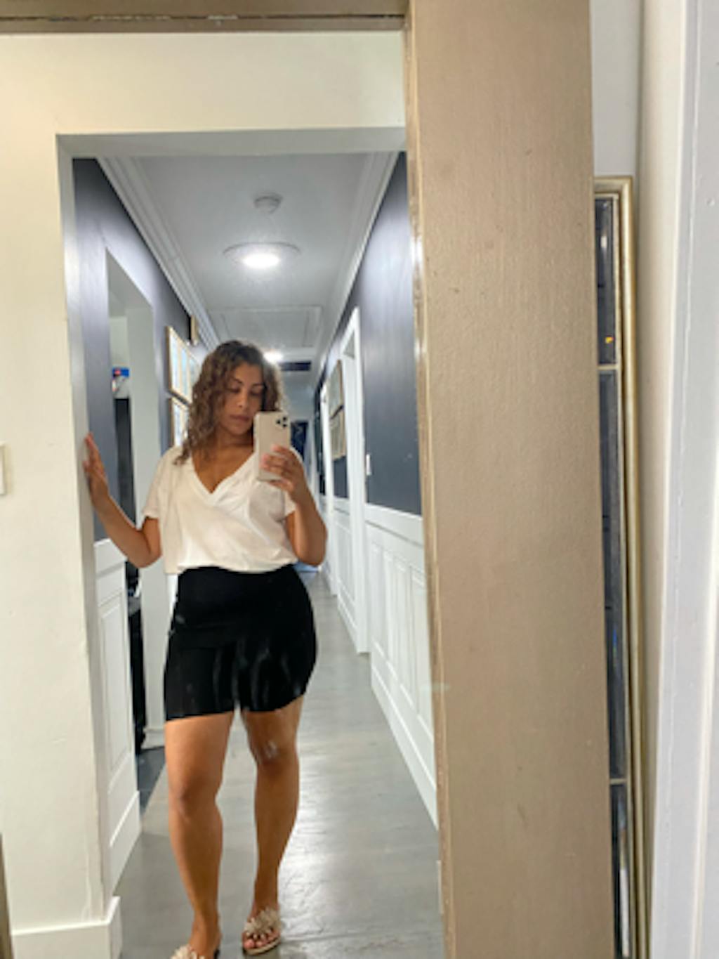 - Try on model measurements: Height 5’6" | Bust 38" | Waist 30" | Hips 43" (Size S)
